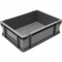 Gerbable et palettisable, avec poignées ouvertes, en polypropylène (PP) gris. Conforme aux normes européennes, stockage facile sur palette normalisée. Fond lisse pour les modèles 400 x 300 mm. Fond renforcé pour les modèles 600 x 400 mm En option chariot roulant.